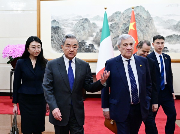 王毅表示,中意是全面战略伙伴,双方优势互补,深化互利合作前景广阔。去年10月,中意政府委员会联席会议成功召开,全面梳理、谋划双边各领域合作。中方愿同意方落实两国领导人重要共识,保持高层及各级别交往势头,增进了解、加强互信、促进合作,推动中意关系保持健康稳定发展势头。今年以来,地缘冲突延宕,热点问题激化,国际秩序和世界安全面临严峻挑战。中意都是珍视和平的文明古国,也是维护多边主义的重要力量。中方愿同意方加强在国际和多边事务中的沟通协调,彰显中意全面战略伙伴关系的时代价值。